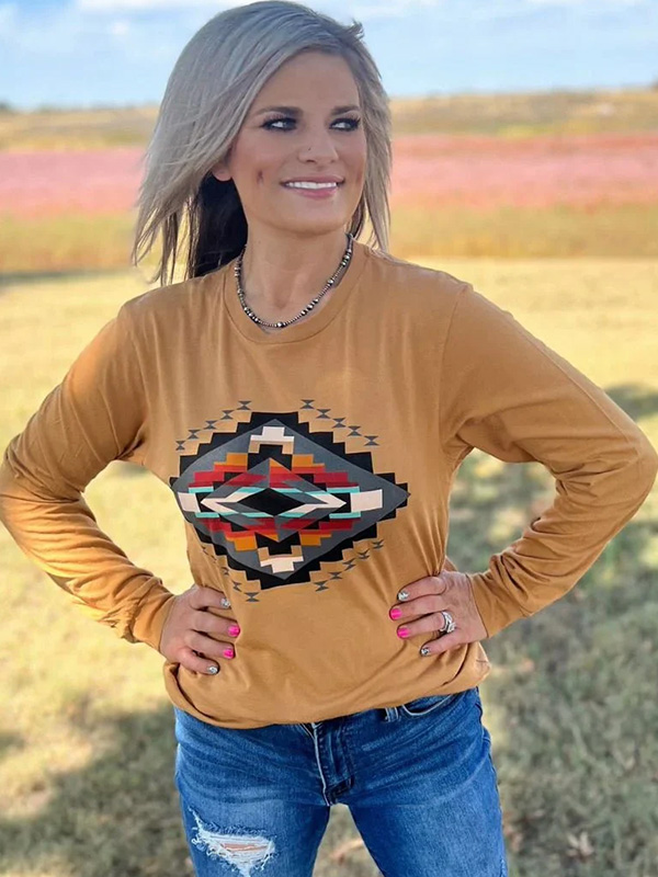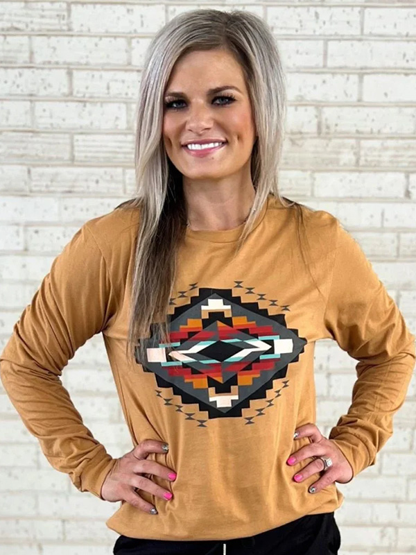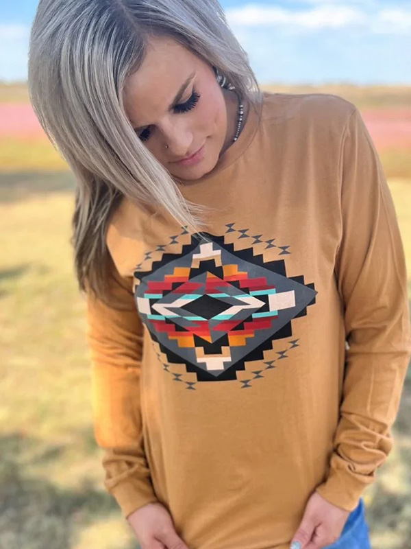 Sunset Aztec Print Long Sleeve Shirt quantity